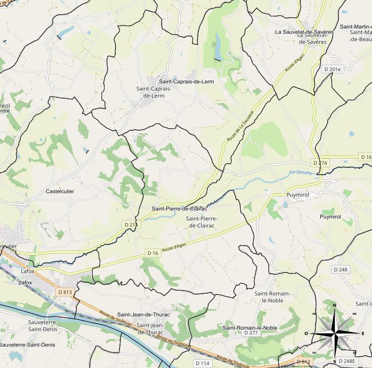 Communes Limitrophes : Les communes voisines incluent Castelculier, Lafox, Puymirol, Saint-Caprais-de-Lerm, Saint-Jean-de-Thurac et Saint-Romain-le-Noble. Ces communes partagent des frontières et entretiennent des relations étroites avec Saint-Pierre-de-Clairac, renforçant ainsi le tissu social et économique local.